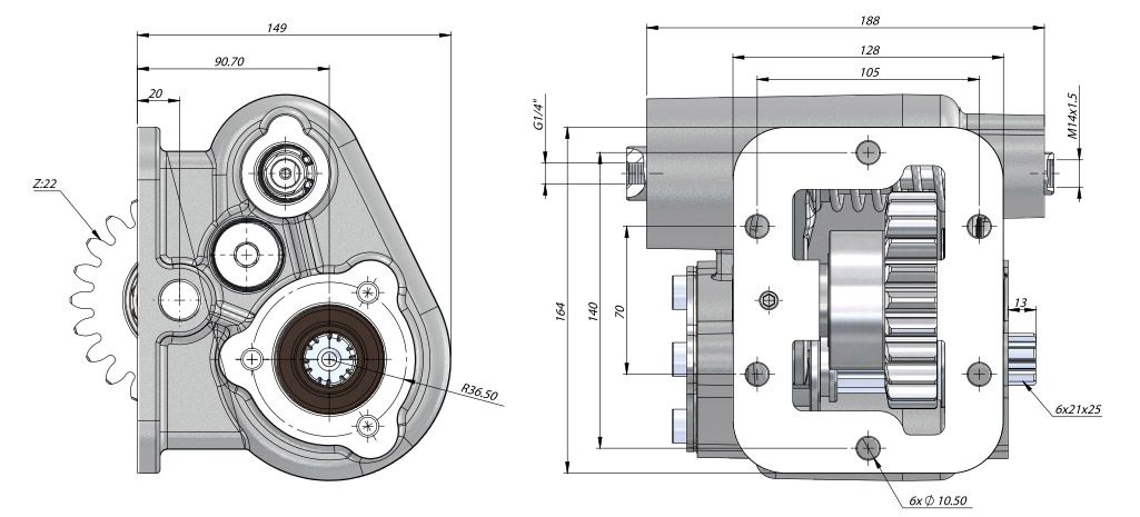 Коробка отбора мощности с подключением с левой либо правой стороны.