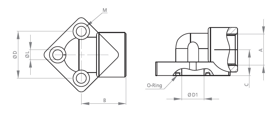 Фланец угловой BA-DRA 351-R-1 (51*1) M10 ромб |