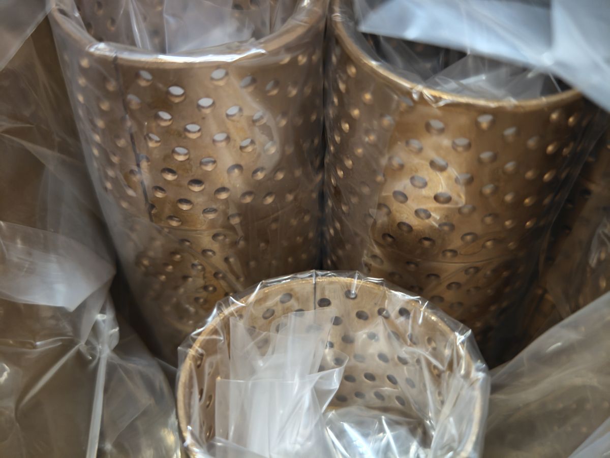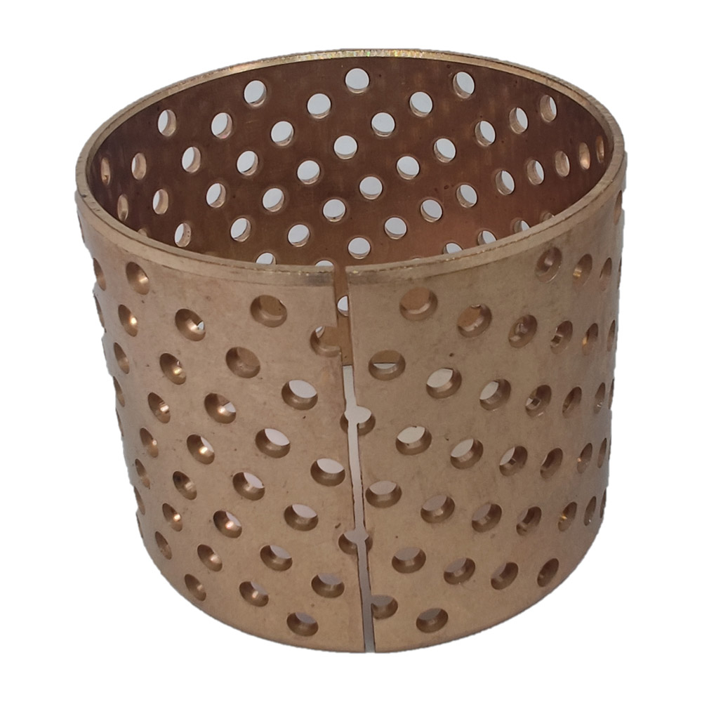 2) Бронзовые втулки с перфорацией и насечками (COB090, COB092) — классическое решение с повышенной износостойкостью. Перфорация и насечки (смазочные карманы) предназначены для улучшения удержания смазочного материала и эффективного отвода продуктов износа из зоны трения, что обеспечивает надежную и долговечную работу узла в условиях высоких нагрузок.